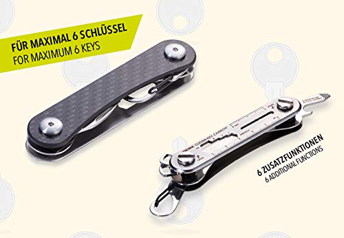 TROIKA - TROIKA Clever Key Carbon - KCL82/CB - Key Organizer for max. 6 Keys with Carbon Front - 6 Additional Functions - Bottle Opener - snap Hook - Carbon, Stainless Steel - TROIKA Original