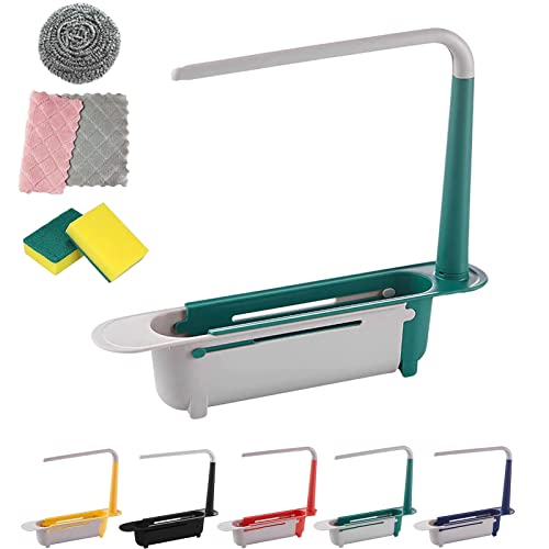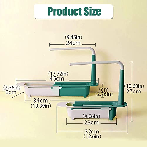 Pnedeodm - رف حوض من تروبيمارت تخزين تلسكوبي محدث سلة تصريف قابلة للتوسيع حامل بطول قابل للتعديل منظم لحوض المطبخ للمطبخ المنزلي أخضر بلاستيك