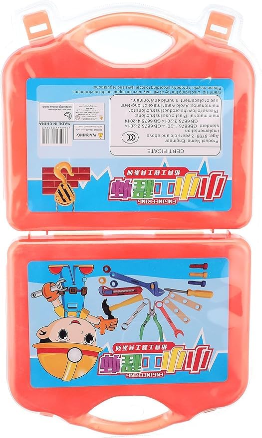 TRUE FIT - حقيبة ادوات المهندس والنجار للاطفال، مجموعة كاملة من الادوات اليدوية، شنطة خضراء مع ادوات متعددة الالوان والاشكال