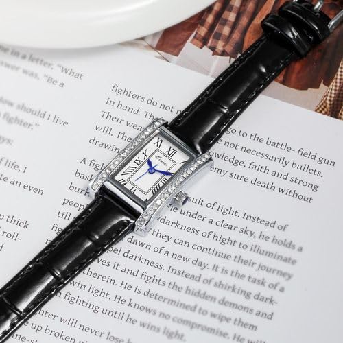 Generic - ساعة كوارتز كلاسيكية للنساء من ترو تايم بسوار جلدي اسود وهيكل فضي وارقام رومانية وزجاج مقاوم للخدش.