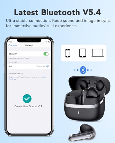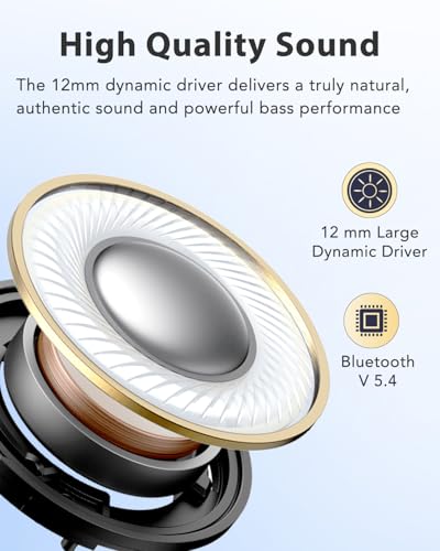 - 【تقنية بلوتوث متطور 5.4】مدعومة بأحدث تقنيات بلوتوث 5.4، توفر سماعة الأذن البلوتوث هذه اقترانًا أسرع واتصالًا مستقر بدرجة عالية ونقل إشارة موثوق - بدون انقطاع أثناء المكالمات أو تشغيل الموسيقى.