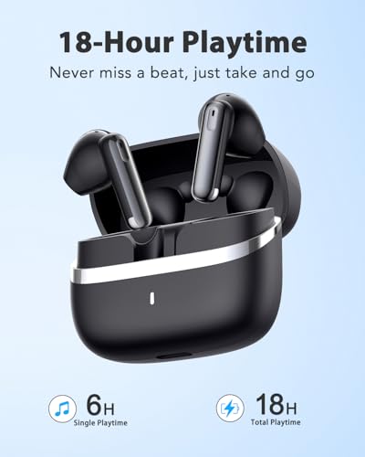 - 【استمع إلى الموسيقى طوال اليوم】استمتع بما يصل إلى 6 ساعات من التشغيل في شحنة واحدة - ومع العلبة المدمجة، استمتع بما يصل إلى 18 ساعة من وقت التشغيل الإجمالي، سماعة جاهزة أينما كنت.