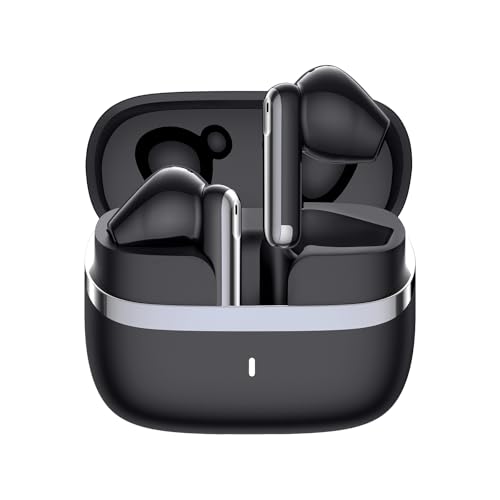 YONETA - سماعات أذن لاسلكية حقيقية بلوتوث 5.4، سماعة حقيقية لاسلكية ستيريو مع ميكروفون مدمج، تصميم محمول للرياضة والتمرين، متوافقة مع آيفون وأندرويد، بلون أسود.