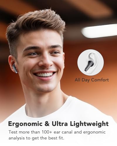 - 【تصميم مريح وخفيف الوزن】مصممة لتوفير الراحة طوال اليوم، ستثبت سماعة الأذن البلوتوث هذه في مكانها بإحكام. تصميم خفيف الوزن يوفر ارتداءًا سهلًا دون عناء - مثالية للرياضة والتمارين وجلسات الجيم.