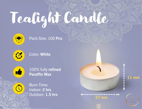 True Decor - TrueDecor True Decor 1.5-2 Hours Burning White Paraffin Wax Unscented Tealight Candles for Home Decor || Tea Lights Candles Set of 100