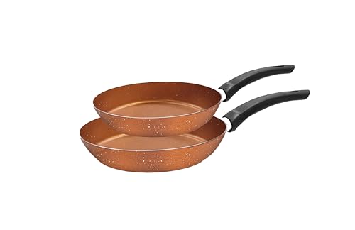 Trueval - طقم طاسات قلي من تروفال، لون جرانيت بتصميم نحاسي ونقاط بلون أبيض، عبوة من قطعتين (مقاس 22-28)