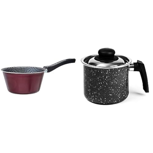 Trueval - Trueval conic teflon casserole, size 14 - maroon + Granite - size 14 - black