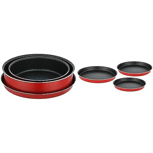 Trueval - طقم صواني فرن من قطعتين مقاس 22-26 مع صينية بيتزا 28 وبلون أحمر + 3 قطع بمقاسات 24-26-30 تروفال سبيكة صلب