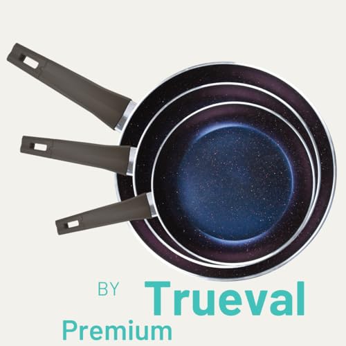 Trueval - Trueval Premium Granite Frying Pan Set – 3 Pieces (20 cm, 22 cm, 26 cm) – Blue Color 3mll thickness