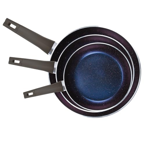 - DUAL SET: Premium granite frying pan set includes three versatile sizes - 20 cm 22cm and a 26cm pans in elegant blue colour
