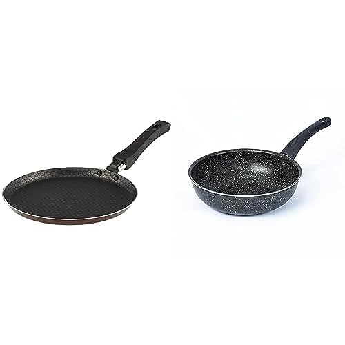 Trueval - Trueval teflon thin frying pan,burgundy, size 21, tofp21 + Lazord granite deep frying pan 24cm, black