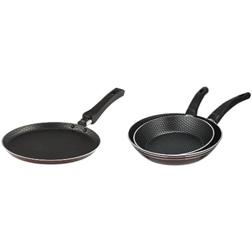 - trueval frying pan set 2 pieces different sizes 22-26 maroon color with honeycomb shape from the inside a modern model that is easy to clean and very reliable with a long life
