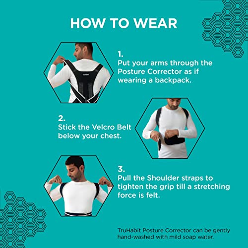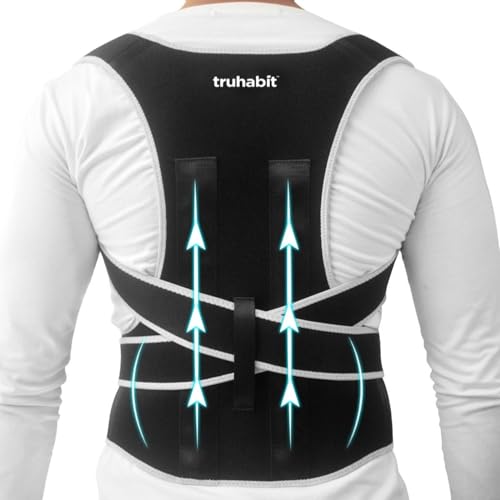- TruHabit Posture Corrector for Men is a Highly Effective Back Pain Relief Products with a Porous Fabric for Sweat-Free Ventilation, Lightweight Posture Correction Belt for Back Pain Relief Equipment