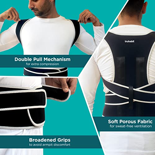 - TruHabit Back Posture Corrector Men has a Back Support Belt for Back Pain Belt for Men with Shoulder Belt for Men that Helps Relieve Pain and in Correcting & Preventing Hunchback as a Posture Belt Men