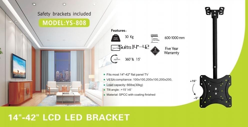 Truman - Truman TV Ceiling Mount Bracket, Ceiling Mount for Most Flat Panel TV Screens Suitable for 14-42 inch screens