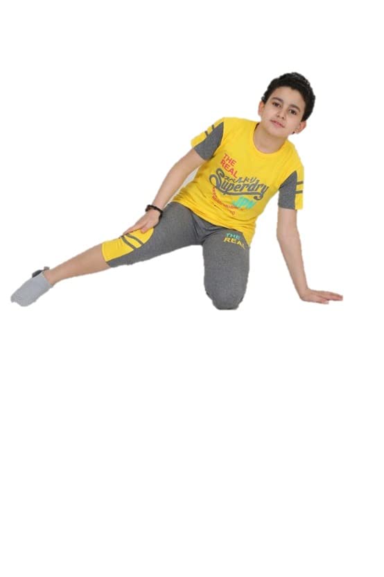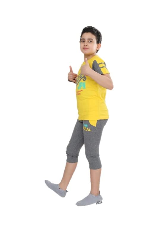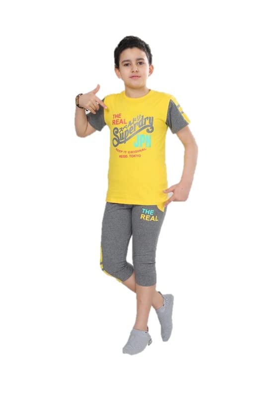 Generic - Trung Boys Summer Cotton Pajama Set of Pentkor T-Shirts - Yellow