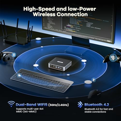 - طريقتان لإعدادات الشبكة - عزز تجربة أكثر سلاسة مع الكمبيوتر الصغير المزود بشبكة واي فاي 5 ثنائية النطاق 5 جيجاهرتز/2.4 جيجاهرتز، سرعات تصل إلى 120 ميجابايت/ثانية، يدعم ميمو 4 × 4 (ام يو-ميمو)، ويتميز بمنفذ جيجابت ايثرنت بسرعة 1000 ميجابت في الثانية (حتى 125 ميجابايت/ثانية). يتيح بلوتوث 4.2 اتصالات سلسة بالأجهزة الطرفية اللاسلكية مثل الماوس والكيبورد والشاشات.