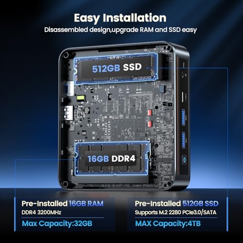 - ذاكرة DDR4 سعة 16GB وSSD 512GB - احصل على تعدد المهام بسلاسة والوصول السريع للبيانات مع أجهزة الكمبيوتر الصغيرة الخاصة بنا، والتي تأتي مثبتة مسبقًا مع ذاكرة RAM DDR4 سعة 16GB 3200MHz (تدعم التوسع حتى 32GB) وSSD M.2 2280 512GB (متوافق مع منفذ الملحقات الإضافية السريع 3.0 وساتا، قابل للتوسيع حتى 4TB)، مما يجعل بدء التشغيل أسرع وإدارة التخزين أسهل.