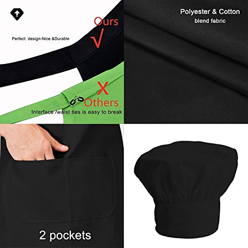 TSD STORY - Black Chef Hat and Apron Set for Women Men, Cooking Kitchen Grilling Chef Apron