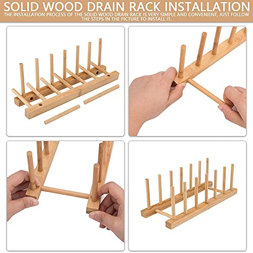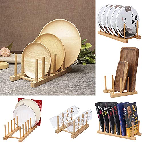 TSKDKIT - Dish Drainers Bamboo Draining Draining Holders Bamboo Plate Holder Cupboard for Cups, Pot Lids, Cutting Boards, Books