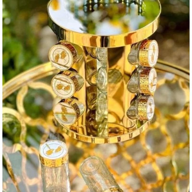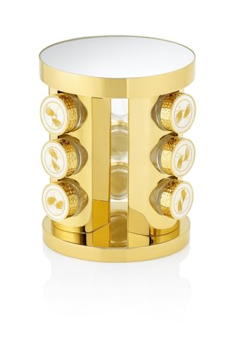 - 360° Rotating Access: Features a smooth-gliding, rotating gold carousel that allows you to access all 12 spices with a simple spin, saving time during cooking and keeping your most-used seasonings within reach.