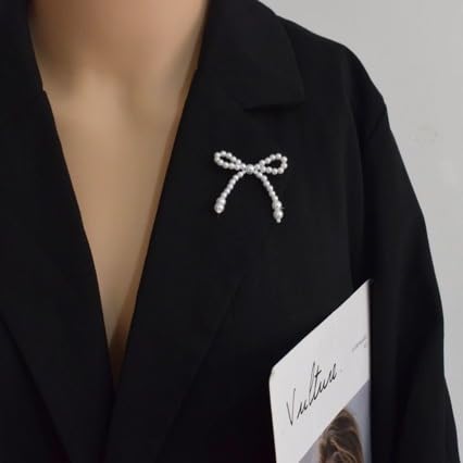TUCEWP - 4 قطع من دبابيس بروش اللؤلؤ اللطيفة للنساء، شريط كوكيت فيونكة فيونكة حقيبة، دبابيس شارات جمالية بيضاء على شكل فيونكة، دبابيس كاواي للهودي والوشاح والسويتر والقبعات والمعاطف وهدايا الكريسماس