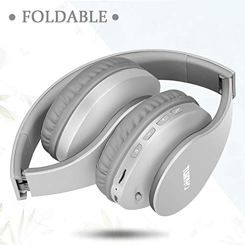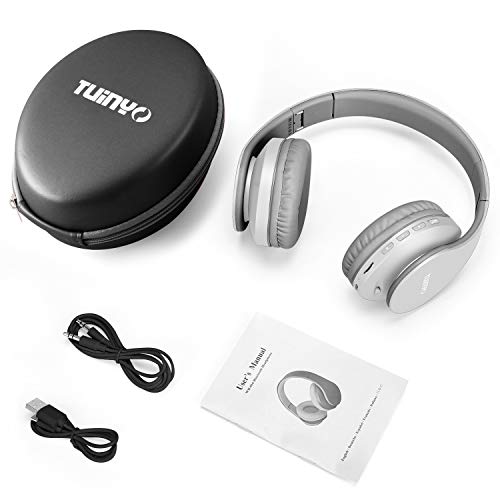 TUINYO - سماعات رأس لاسلكية غامرة بتصميم فوق الأذن مع بلوتوث قابلة للطي ومزودة بميكروفون، للسفر والعمل والتلفزيون والموبايل من توينيو، لون رمادي