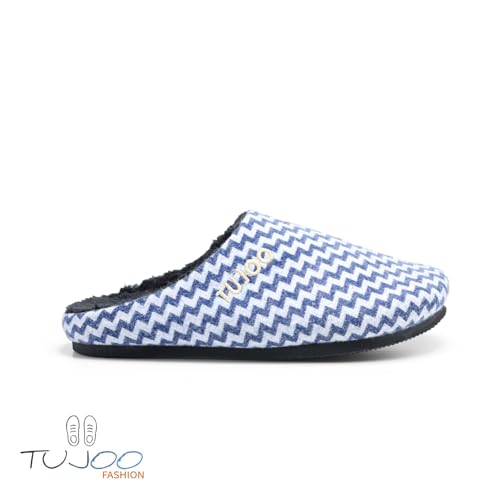 Generic - شبشب منزلي قطيفة مضلع للنساء من توجو، مبطن بالفرو، بني، مقاسات 37-41 (ازرق-ابيض، 41)