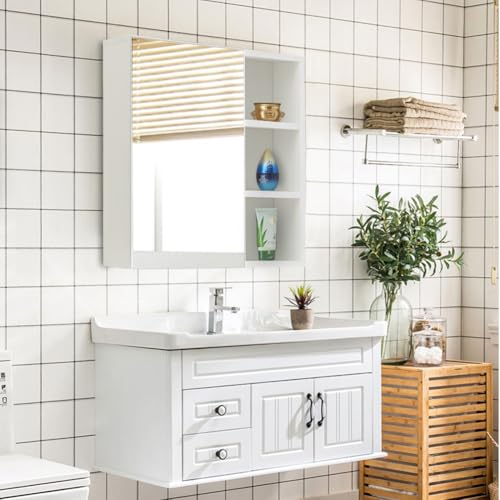 - 🛀 دولاب مراية الحمام -- مرآة زئبقية عالية الدقة، غير قابلة للخدش بسهولة، توفر صورة أوضح. المراية تعرض كل زاوية بدقة عند وضع المكياج.