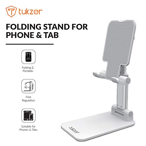 Tukzer - Tukzer Fully Foldable Tabletop Desktop Tablet Mobile Stand Holder - Angle & Height Adjustable for Desk, Cradle, Dock, Compatible with Smartphones & Tablets (White)