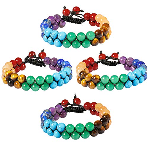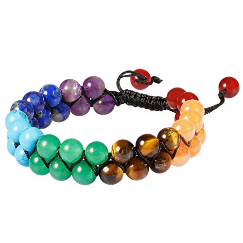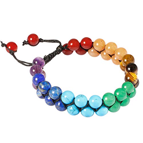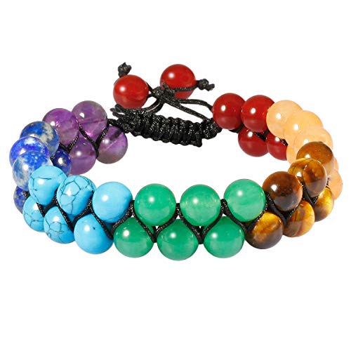 TUMBEELLUWA - TUMBEELLUWA Beaded Bracelet Stone 8mm Double Layers Adjustable Meditation Power Healing Crystal Bracelets, 7 Chakra Stones, stone,