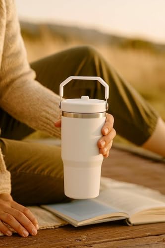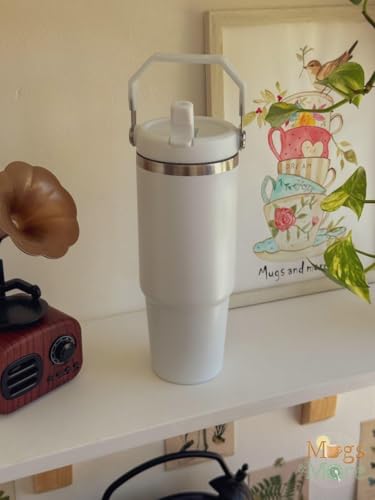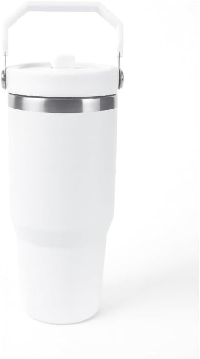 Generic - Tumbler Insulated With Handle And Straw Lid, 30 Oz Stainless Steel Travel Mug, Double Wall Vacuum Cupholder Compatible, Hot And Cold Water Bottle 900 Ml (White)