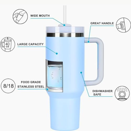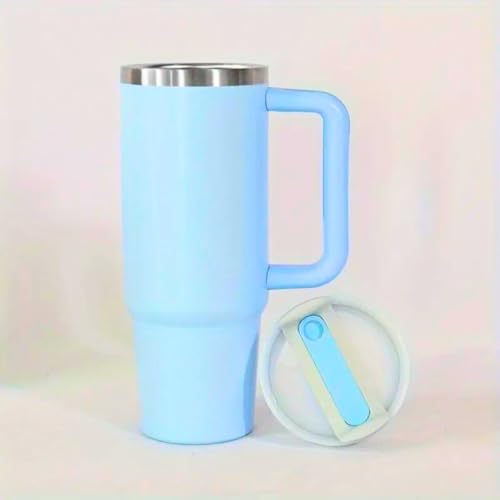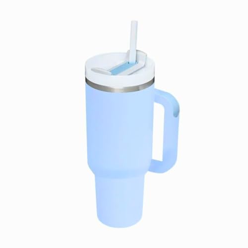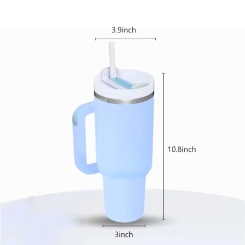 Goedix - Tumbler with Straw and Handle- Stainless Steel Coffee Mug, Insulated Travel Mug Set with Straw and Cleaning Brush, Hot & Cold Water, Cup for Coffee, Tea, Water Bottle 40 oz, Mug Coffee (Sky Blue)