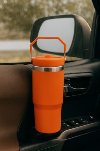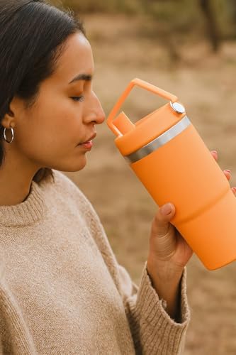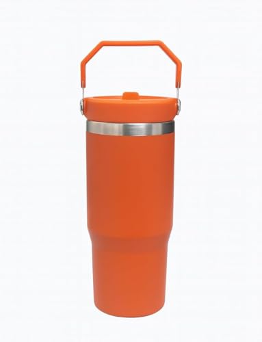 Generic - كوب مع غطاء بماصة ومقبض، كوب معزول بتفريغ الهواء من الفولاذ المقاوم للصدأ بجدار مزدوج للسفر، زجاجة مياه ساخنة وباردة، 890 مل (لون برتقالي غامق)