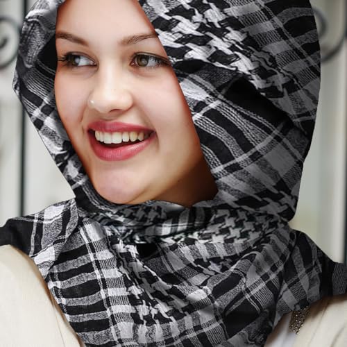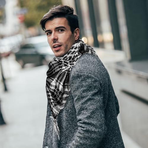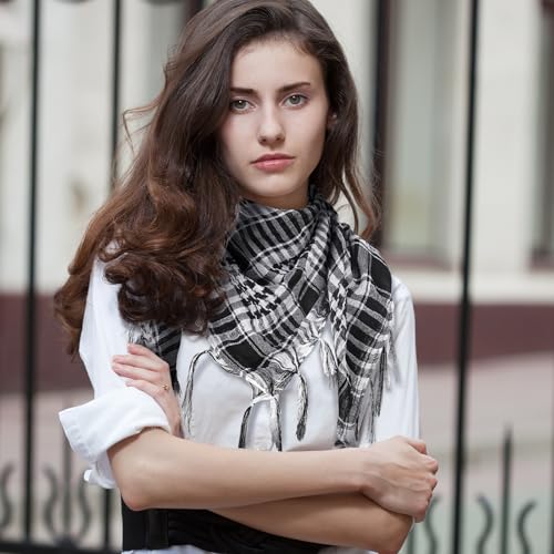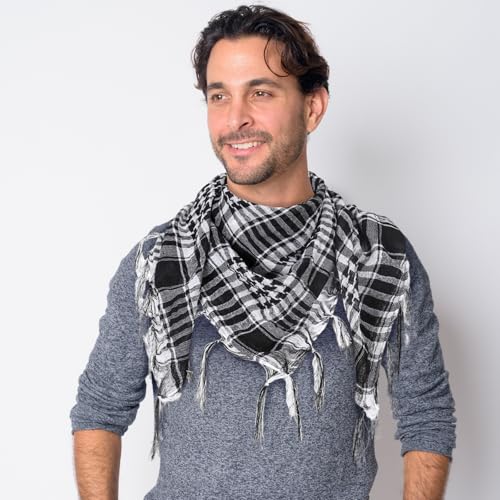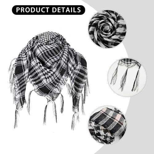 TUONYIS - سكارف للرقبة من تونيس، وشاح عرفات، وشاح تكتيكي، وشاح مثلث، منديل رقبة بشراشيب، وشاح للأولاد والرجال والنساء من جميع الأعمار، مقاس واحد (أسود + أبيض)