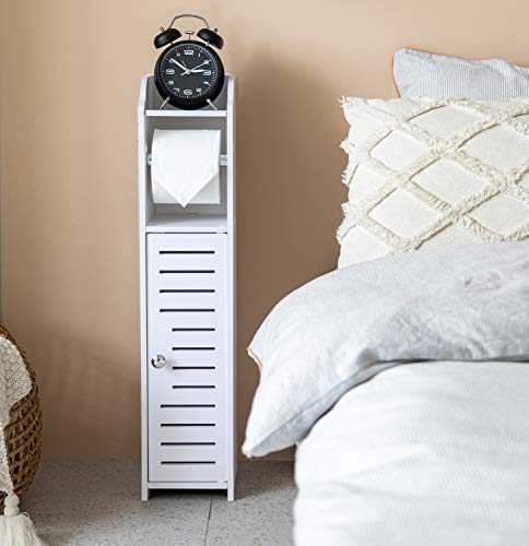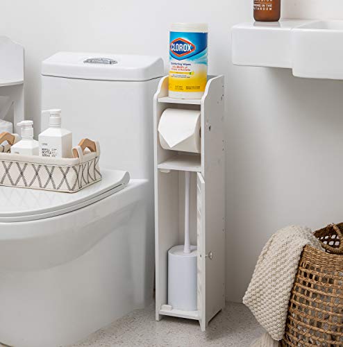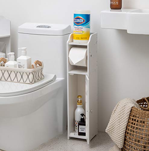 Tuoxinem - حامل مناديل ورق خزانة تخزين رفيعة للحمام للمساحات الصغيرة الحمام مع عمود دوران لورق التواليت ضيقة لنصف ابيض تووكسينيم