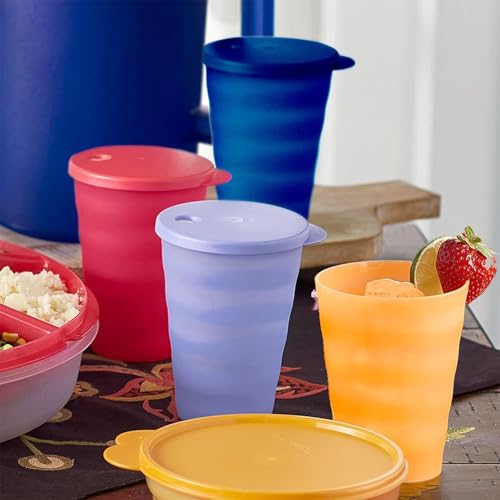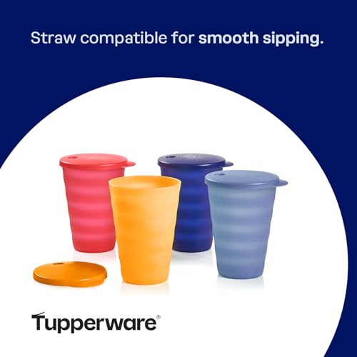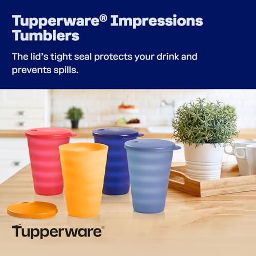 Tupperware - Tupperware Impressions Tumbler Set - 4 Count - Dishwasher Safe & BPA Free (4 Tumblers + 4 Lids, 17 fl oz each), Multicolor