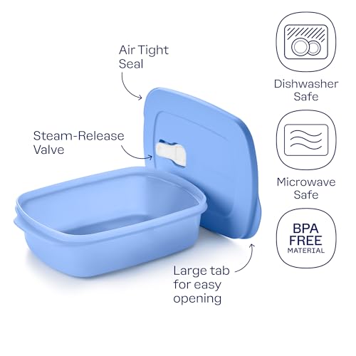 - حاوية مناسبة للاستخدام في الميكروويف مع غطاء بفتحات تهوية لاصطحاب وجبات منزلية الصنع أثناء التنقل