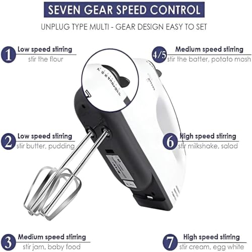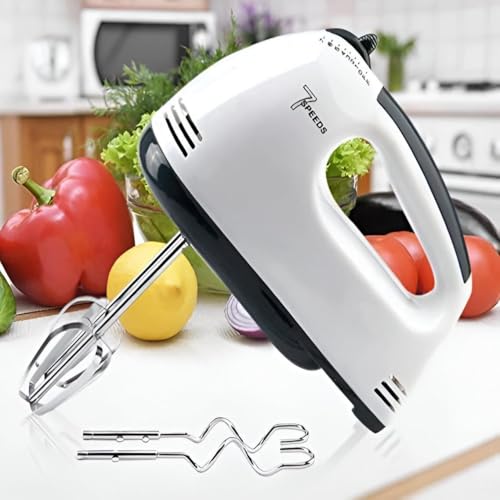 Generic - مضرب كهربائي عالي الأداء بـ 7 سرعات، خفاقة وخطافات عجين من الفولاذ المقاوم للصدأ، مصمم لخلط البيض والعجين، يد مريحة، سهل التنظيف، موفر للوقت