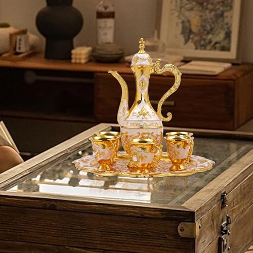 JOMCYDM - Turkish Coffee Cups Turkish Tea Set with 6 Cups Vintage Turkish Coffee and Tea Pot with Tray Gold Unique Design Durable Zinc Alloy Large Capacity Multi-functional Teapot Ideal for Entertaining
