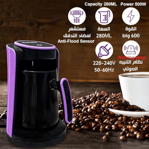 Generic - Turkish Coffee Maker Electric, 500W, 280ml Capacity, Anti-Overflow Sensor Safety System, Portable, Automatic Shut-Off, 8 Cup, Compact Design For Home Office Travel (Purp)