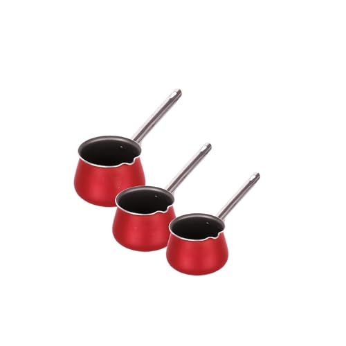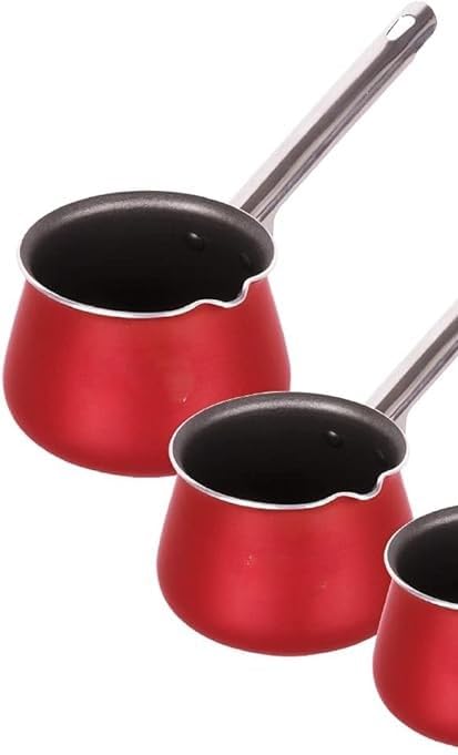 - محتويات الطقم: مجموعة كاملة من 3 قطع لتسخين القهوة التركية تتميز بلمسة نهائية من المينا الأحمر وتصميم مقبض طويل عملي للاستخدام الآمن.