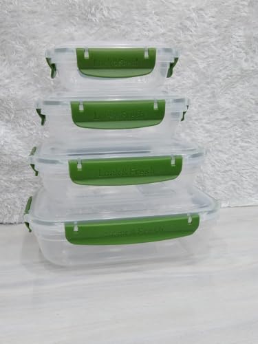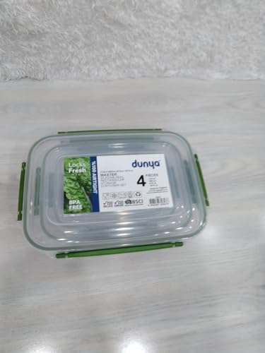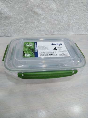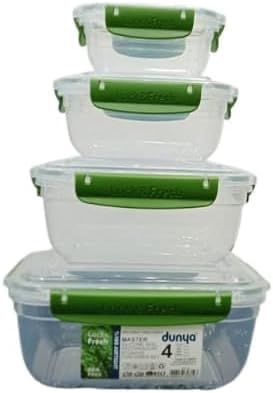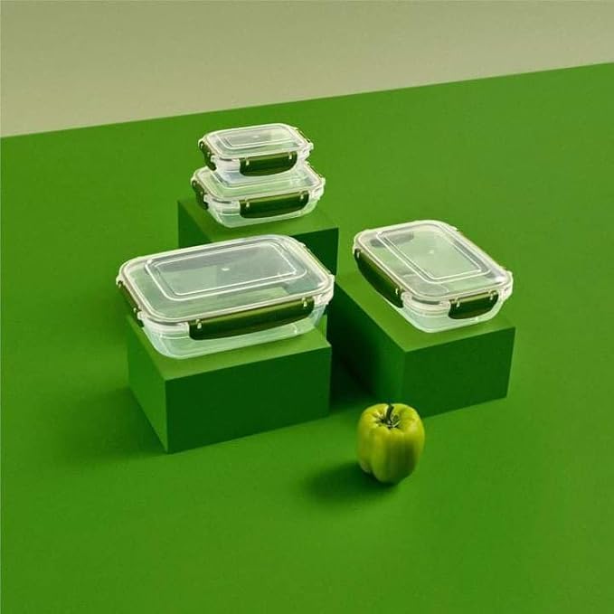 Generic - Turkish Made Rectangular Food Saver Refrigerator Container Set of 4, BPA Free Plastic, Clear and Green, Airtight Lid