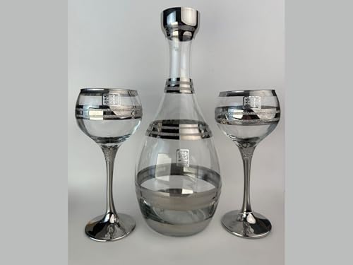 - تصميم عصري مميز: زخارف فضية وسوداء لامعة على زجاج شفاف عالي الجودة، مع قاعدة معدنية فضية للأكواب تضيف لمسة من الفخامة