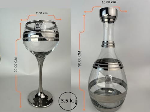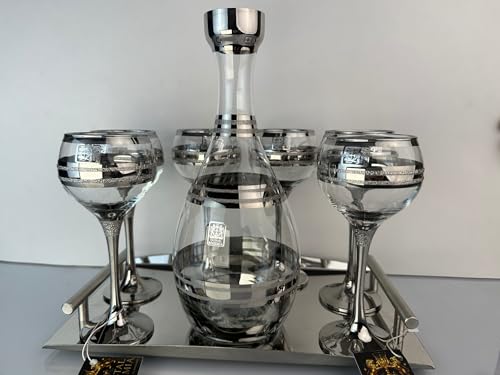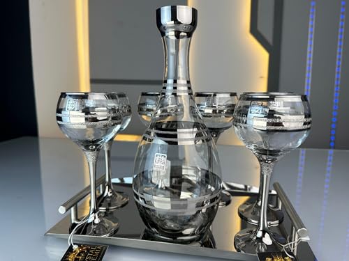 Generic - طقم أكواب نيش بوم تركي 6 قطع مع قارورة، زخرفة فضية
