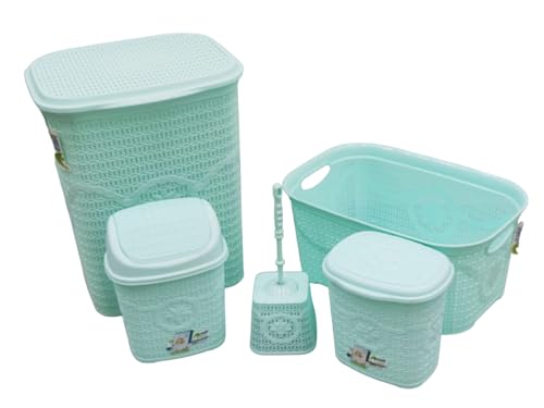 Generic - طقم حمام بلاستيك تركي مكون من 5 قطع، 2 سلة غسيل، سلة مهملات، صندوق مسحوق، فرشاة تواليت، اكوا