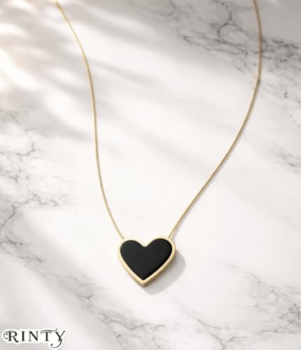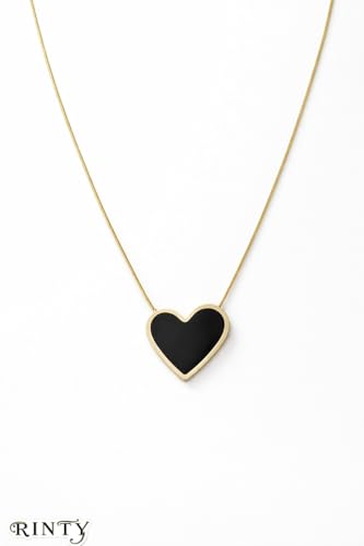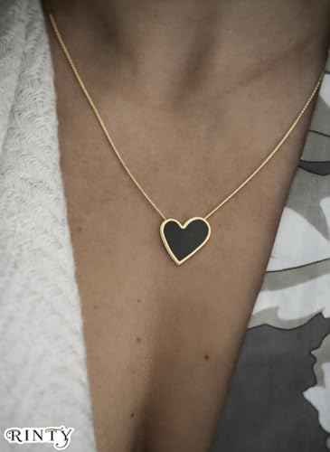 Generic - سلسلة قلب ستيل تركي للنساء، ذهبي وأسود تصميم قلب