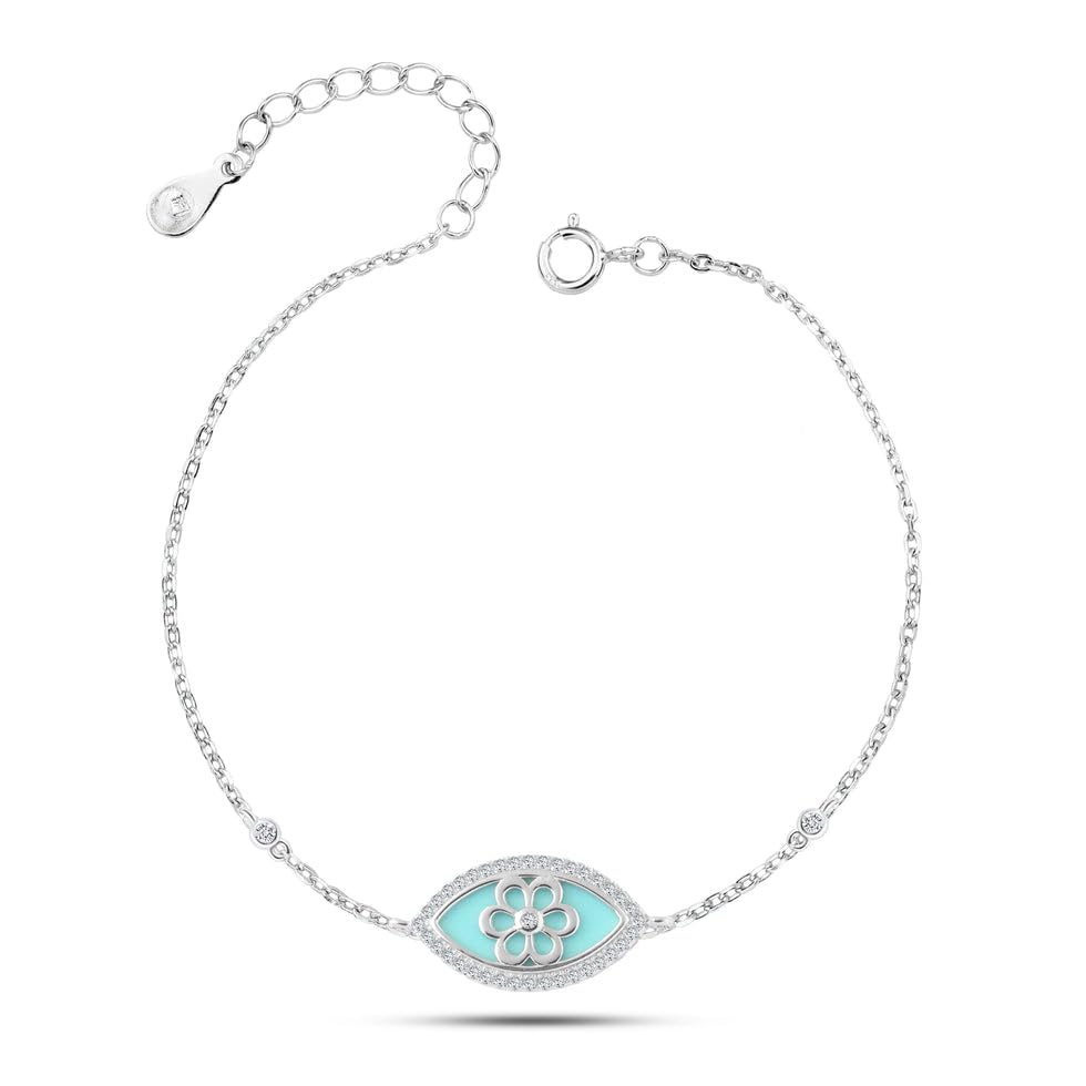 Generic - Turquoise Eye Flower Zircon 925 Silver Bracelet,925 Silver bracelet featuring a turquoise eye with a delicate flower center, accented by sparkling zircon for a chic look.