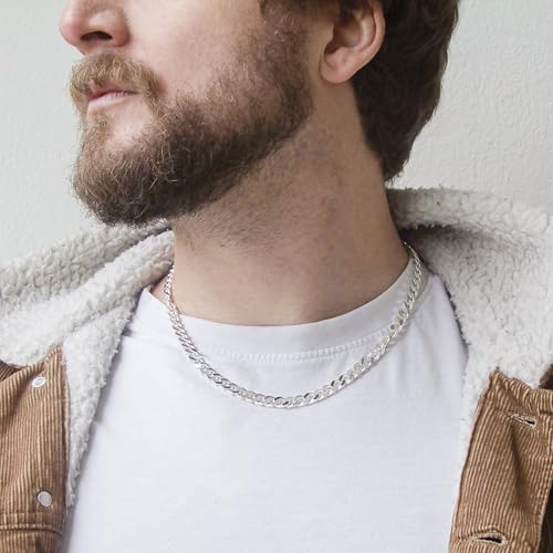 Tuscany Silver - توسكاني سيلفر قلادة سلسلة مربعة من الفضة الاسترليني 6 ملم للرجال مقاس 51 سم/20 انش، مينا بلون سادة