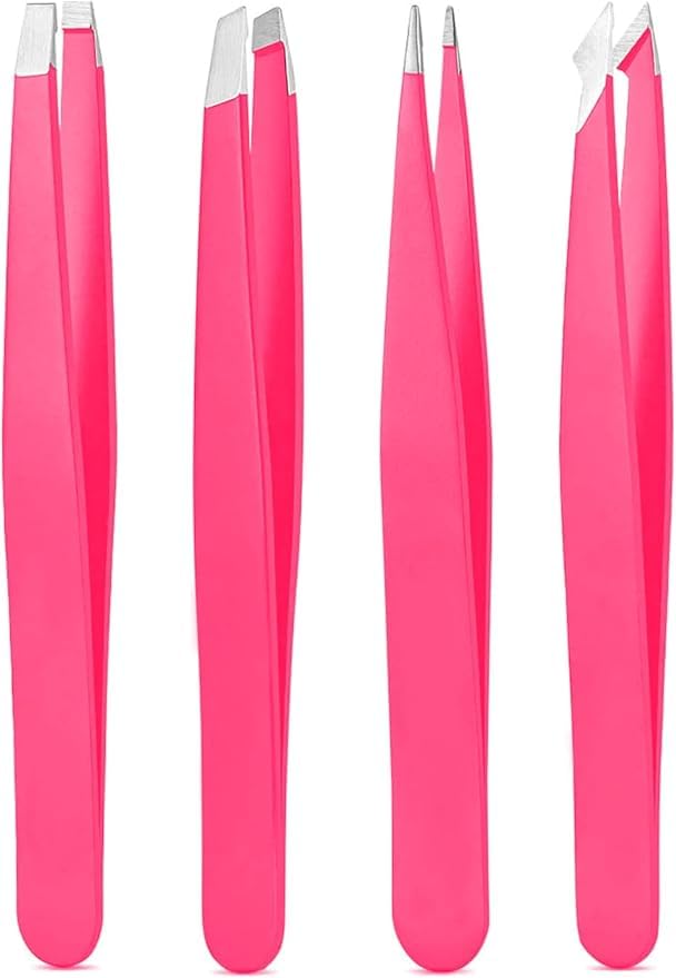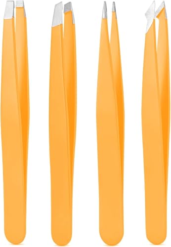 Generic - Tweezers Set, High Precision Stainless Steel Eyebrow Tweezers for Facial Hair, Inward Growing Hair and Splinter Remover Kit, Suitable for Women and Men, 4-Piece Set.(random color)